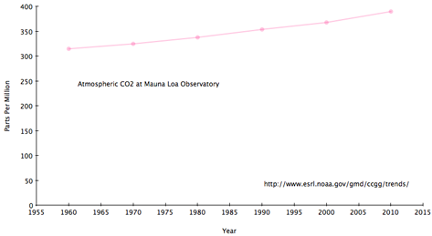 This is a posting I've been thinking I should write for quite some time. I'm prompted as I again saw this graph of CO2 in parts per million, as measured at the Mauna Loa Observatory in Hawaii since the 1950's, used this week at the Royal Society of Edinburgh by the Lord Kreps.